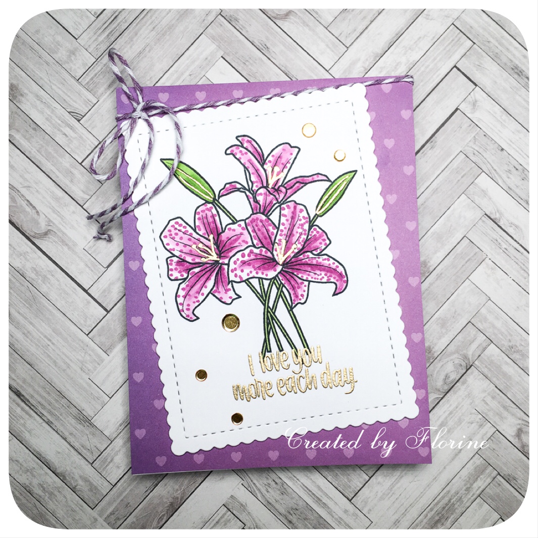 Hi everyone, hope you are having a great day. Today I want to share this simple card with you. I colored the image during Kathy’s 30 days coloring challenge. Flower image is from the Spring Bouquet stamp set from Avery Elle. Let’s get started!