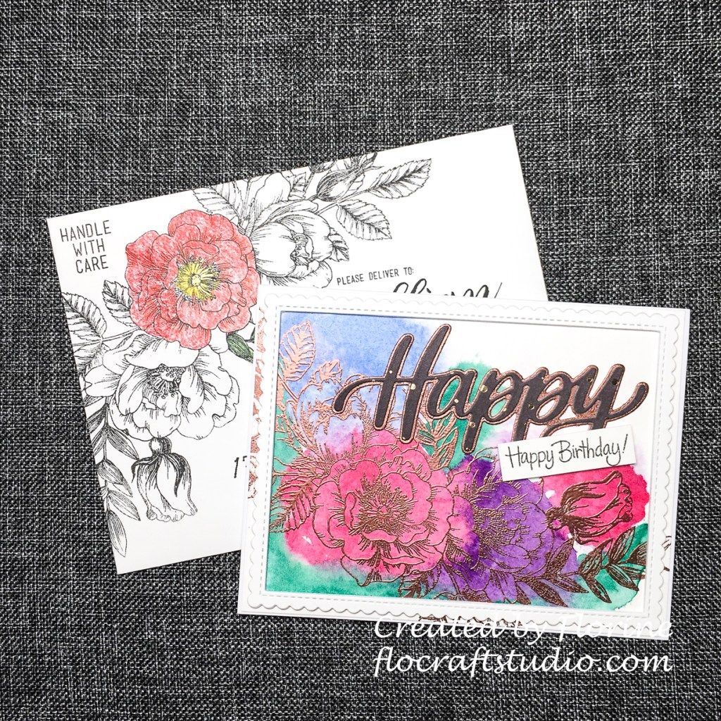 Beautiful card Flo! What a wonderful design and your watercoloring is very pretty! The beautiful florals on the envelope too give your card an extra special touch of love!