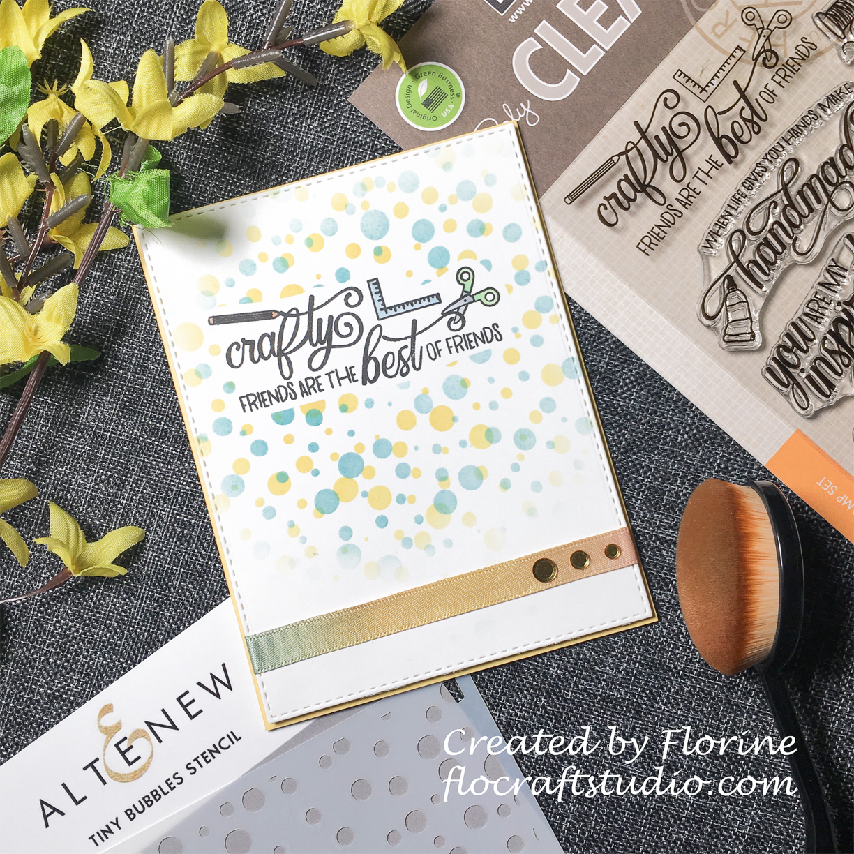 1. When Hero Arts released the new set of stamps along with their My Monthly Hero May 2019 card kit, I made sure I ordered a few before it was sold out. For today’s cards I stamped “Crafty friends are the best of friends” from “Crafty Messages” stamp set on a piece Post-it note and cut out.